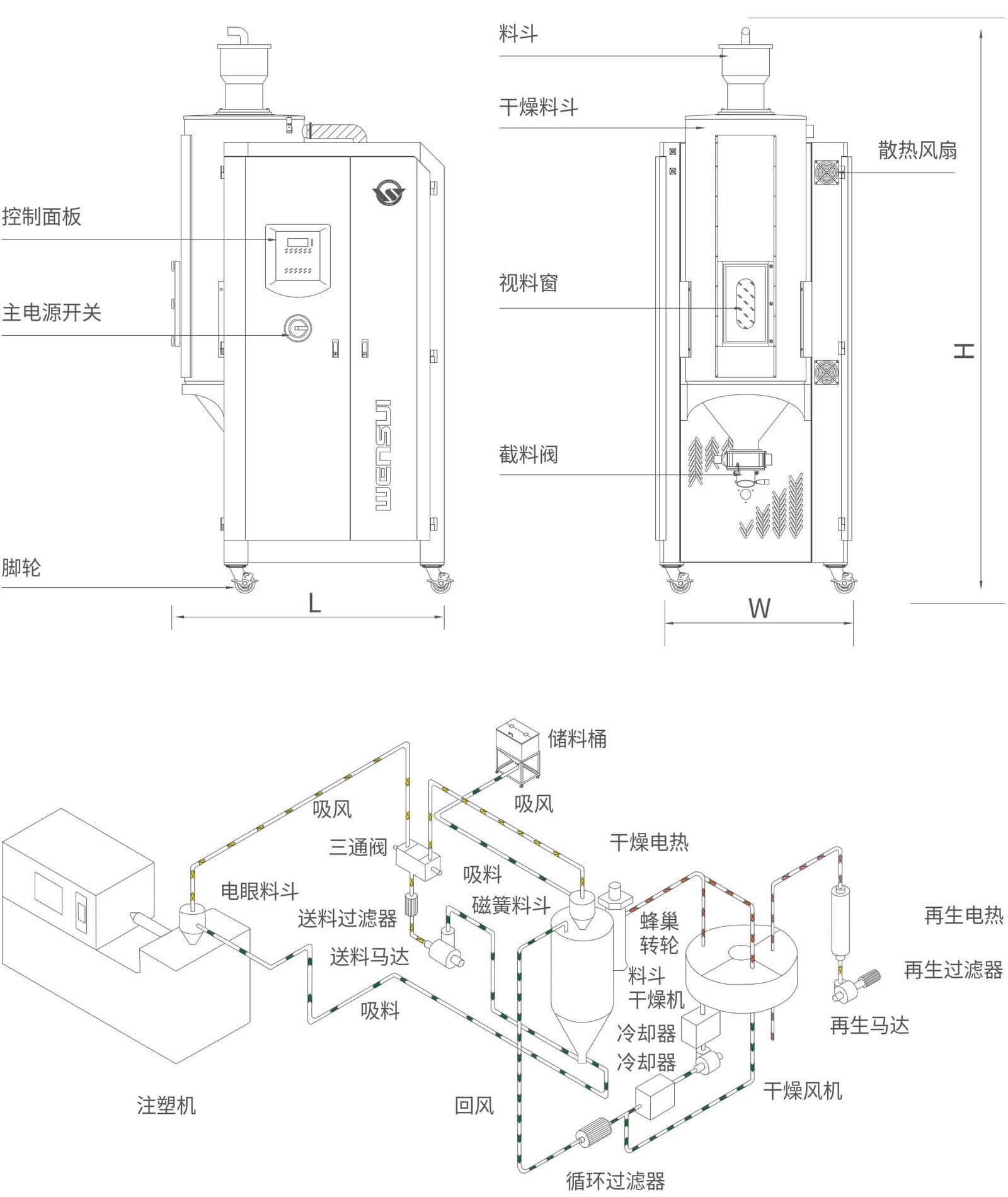 VDAL干燥送料双机一体本设备集干燥、送料两种功能于一体;输送标准配置为一拖一:...